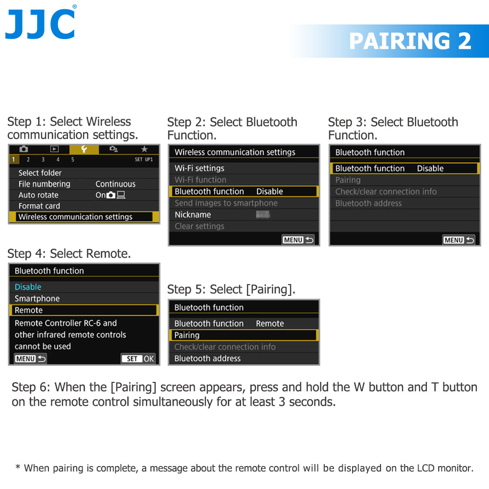 For proper use, pair the remote with your camera first, each EOS model is a bit different but this is the basic steps for a Canon M50: