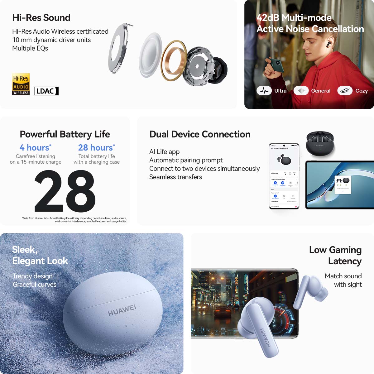 HUAWEI FreeBuds 5i Wireless Earphone | TWS Bluetooth Earbuds | Hi-Res Sound | 42dB Multi-mode Active Noise Cancellation | 28 hr Battery Life