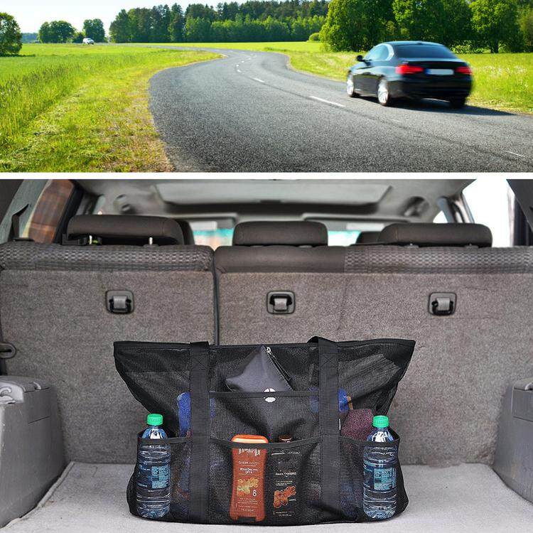 Usually when going out to play on the beach with children, we need to take a lot of things like sanding tools, towels, clothes, toys, etc, which is inconvenient. This beach storage bag can store them all. Due to a mesh bag design, all sand and water can be leaked. And it can also be used to hold snow digging tools in winter.
