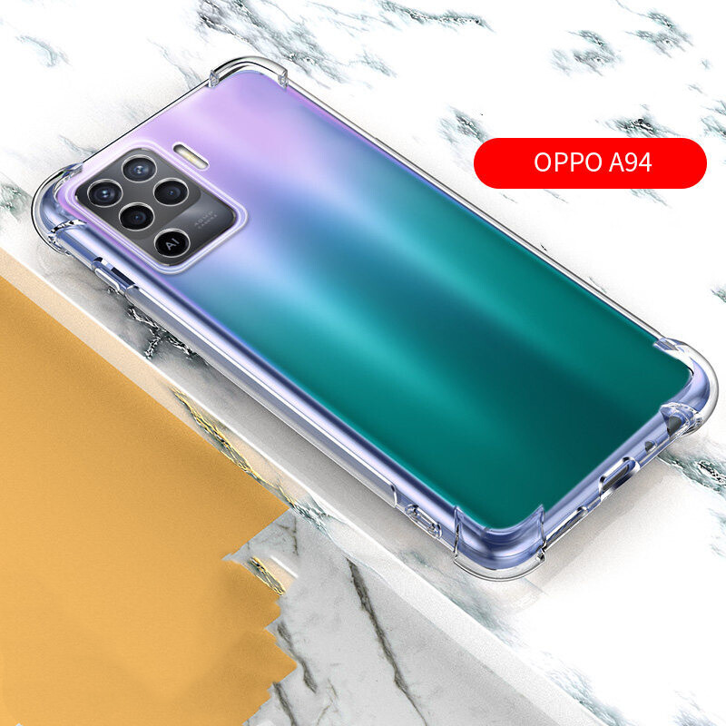 For OPPO A94 4G CPH2203 Slim Crystal Clear Soft TPU Bumper Cushion Jelly Case with Four Reinforced Corners Transparent Scratch Resistant Protective Cover