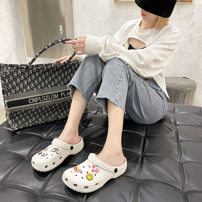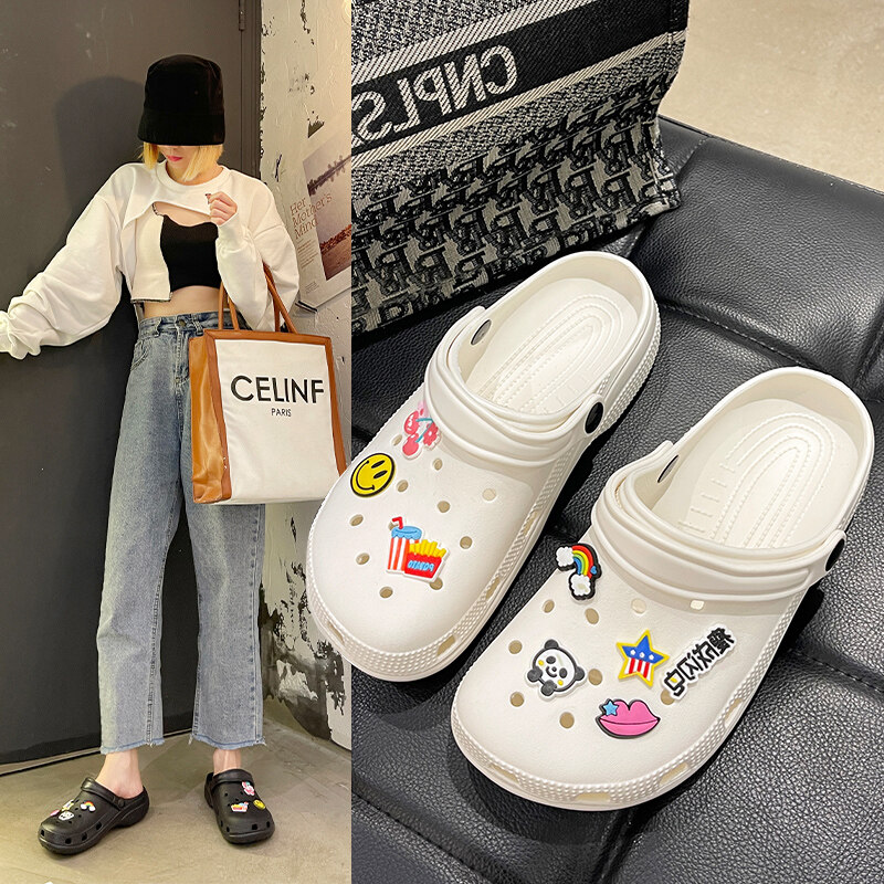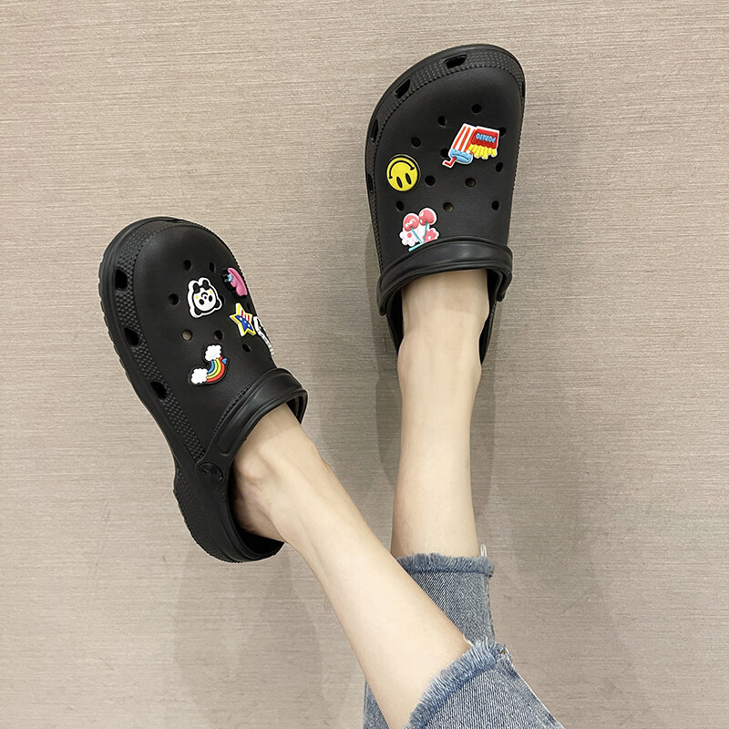VIWANA Unisex Sandals For Women Men Plus Size 44 Summer Beach Slippers Korean Style Black White Slip On Clogs Women Croc Shoes For Women On Sale