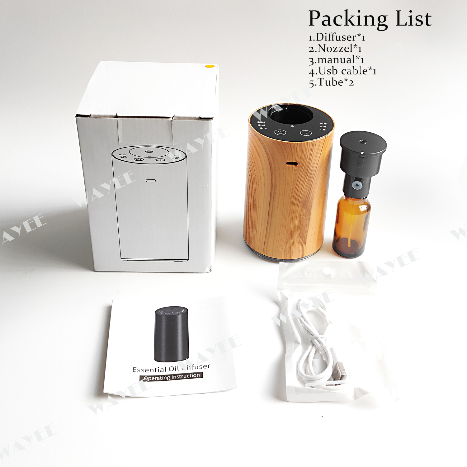 Warning&Caution 1. Use input voltage DC5V, computer USB interface, USB interface adapter or car charger with USB interface(please choose the certified charger from branded manufacturer). 2. After the product is installed and used, it cannot be turned over or titledfor a long time. 3. There is an anti-tilting device inside the machine, shaking will make sounds; this is normal. 4.Only need to fill half a bottle of essential oil when you use it. If it is full,the essential oil will leak out when the machine is dumped. FQC 1. How long does it take to fully charge the battery? Answer: 4~6 hours. 2. What kind of essential oil does the product use instructions? Answer: It is recommended to use pure plant essential oils or essential oils that are volatile without impurities and are not viscous. 3. Can't see the amount of mist when the product is turned on? Answer: a. This is a normal phenomenon. The product itself has the function of automatically adjusting the atomized particles. To save essential oils to the greatest extent; b. The atomized particles are only 1~3 nanometers, which is difficult to catch with the naked eye. 4. About the fragrance? Answer: The scent concentration of each essential oil is different. When the machine is running, use your lips to approach the nozzle and feel gas coming out.Indicates that the machine is operating normally; some essential oils will have a weaker smell. Influencing the aromatherapy effect of essential oils, as long as the essential oil molecules diffuse in the air and are absorbed by the body, they will have the aromatherapy effect of essential oils. It is not necessary to have a strong smell of essential oils in the entire air, which will cause olfactory fatigue and discomfort. 5. About the sound during use Answer: there will be the sound of motor vibration when the machine is running, which are all sounds that meet the indoor use standards.Everyone has different sensitivity to sound. #Nebulizer #aromadiffuser #aromatherapy #gift #Accumulator #aromatic #timing #Portable #Essentialoil
