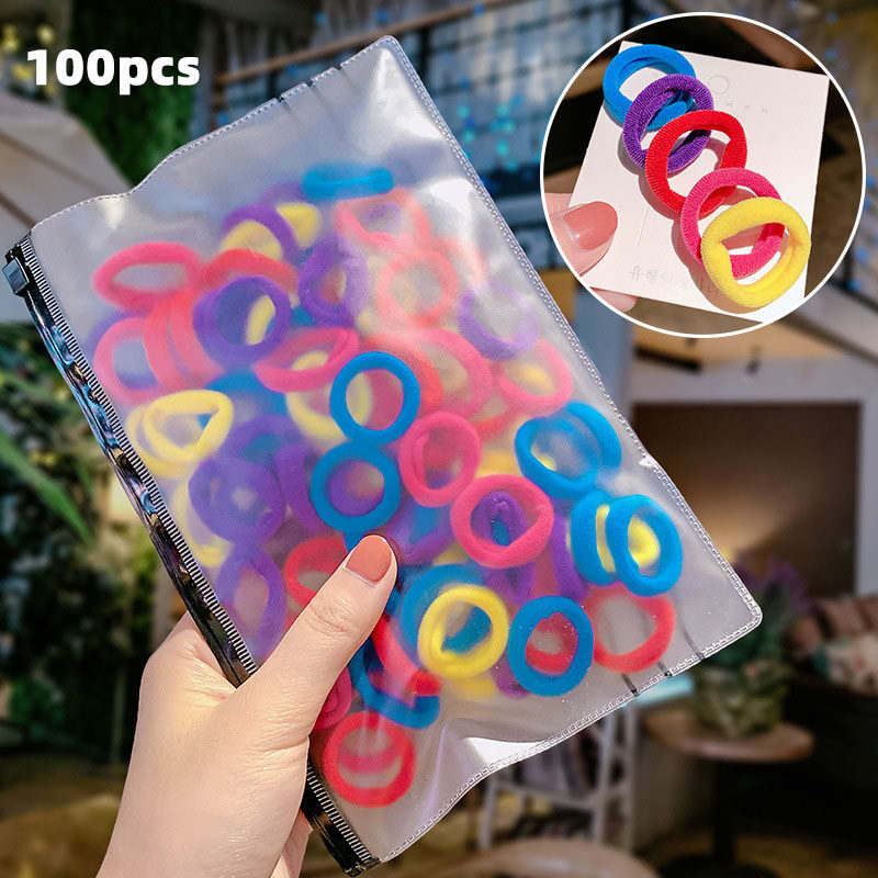 100Pcs/Pack Baby Hair Bands Cute Colorful Elastic Rubber Girl Kids Hair Rope Lovely Ponytail Holder Hair Ties Hair Accessories