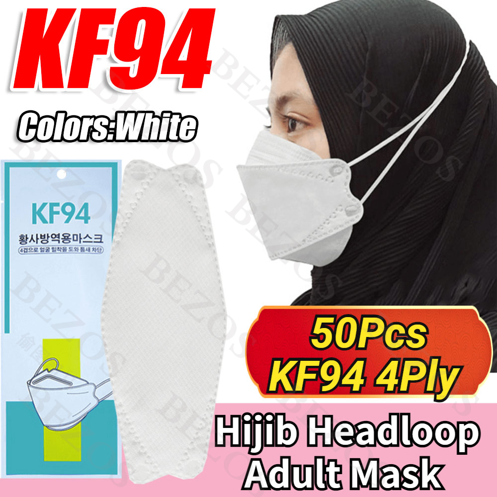 【Hijab】14Colors 50PCS KF94 Headloop Hijab Korean Topeng Muka Headloop 4Ply High Quality FaceMask Topeng Muka Tudung Kpop Kdrama Protection Korea Respiratory Products Cover Prevent Influenza and Antiba