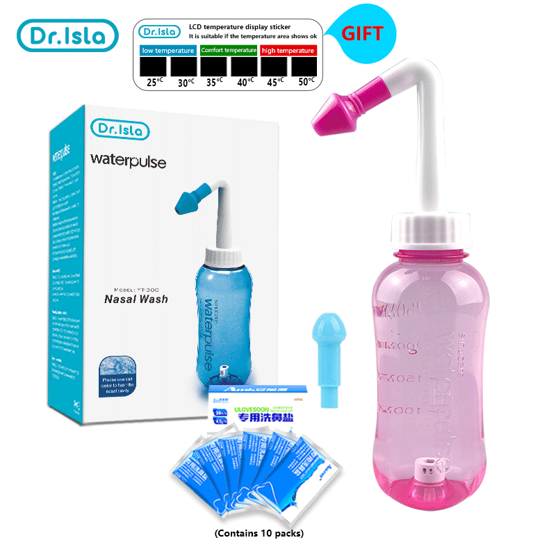 Aolon x DR.Isla YT300 Water pulse 300ml Nasal Wash +10 Bag 2.7g Nose Antibacterial Powder Washing Salt Nose Clean Bottle Cleanser for Adult Allergic Rhinitis, Sinus, Daily Nasal Rinsing Nose Care Too