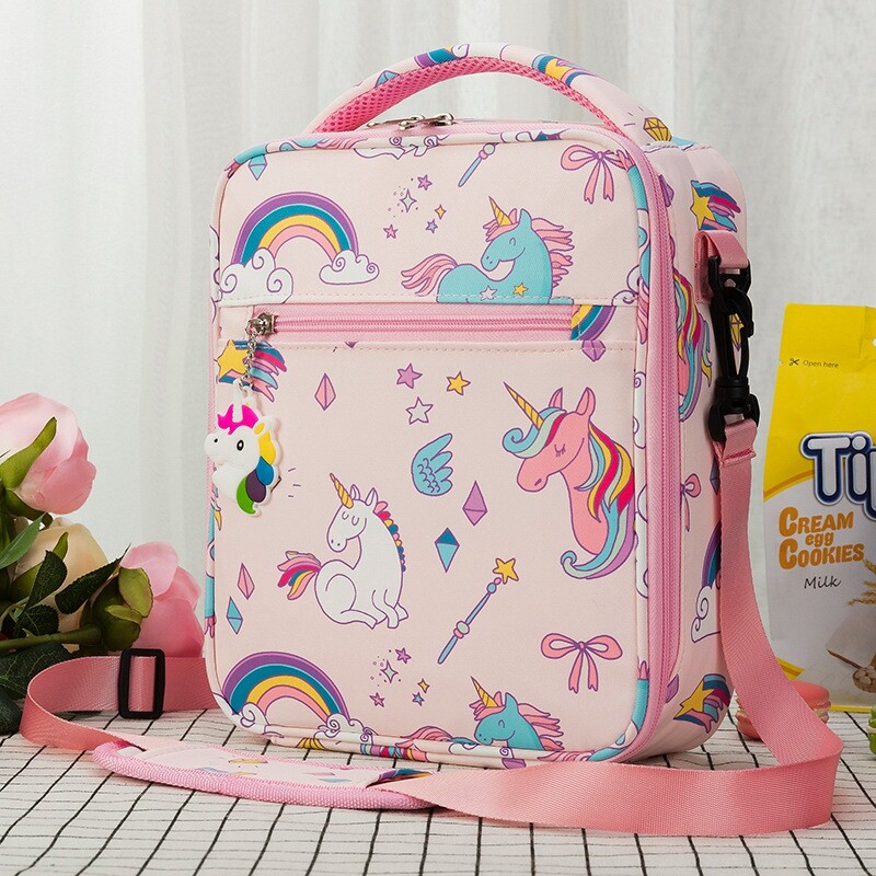 Cartoon Unicorn Insulated Lunch Bag With Shoulder Strap Cute Lunch Box Thermal Tote Bag Portable Leak Proof Cooler Bag For Kids Teen
