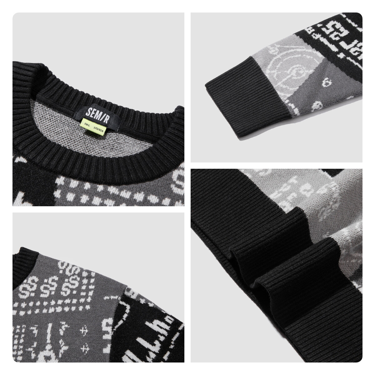 Semir Sweater Men Stitching Contrast Color 2022 Winter New Fashion Loose Knitted Sweater Trend