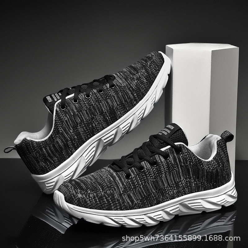 Mesh Surface Shoes Men's Summer Breathable Thin Mesh Surface Hollowed Large Mesh Men's Shoes Casual Running Black Flyknit Sneaker