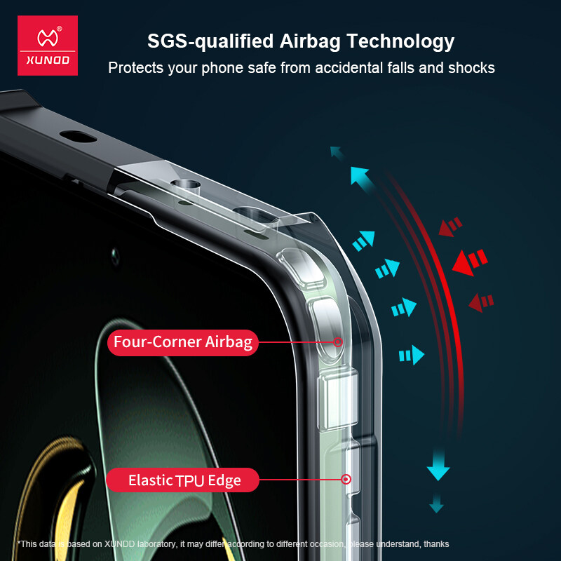 • protects the outer edges of your phone, protecting it from accidental drops and shocks. SGS-approved built-in airbag technology protects against falls