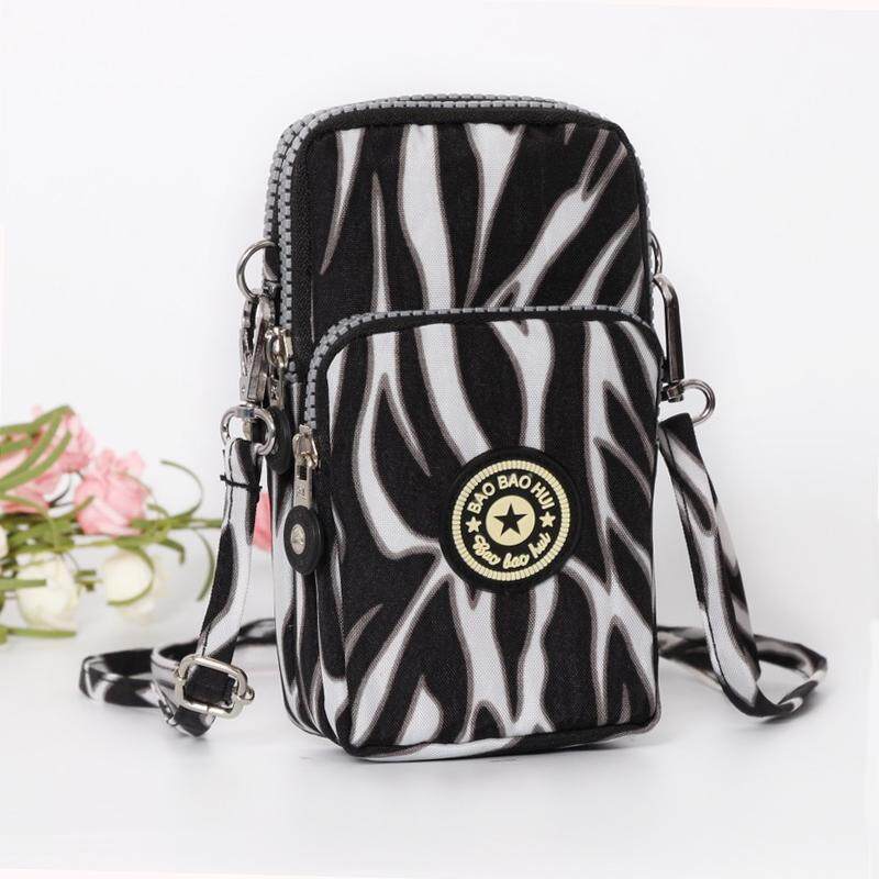 Description:Beautiful look & Suitable for trimming and travelingFeatures: Adjustable beltMaterial: ClothLining texture: PolyesterStyle: Cross-bag Mobile Phone Shoulder BagColor: Rose red,Black,Dark blue,Purple red,Leopard ,Black lipsSize: 18*10*6cm (H*W*T)
