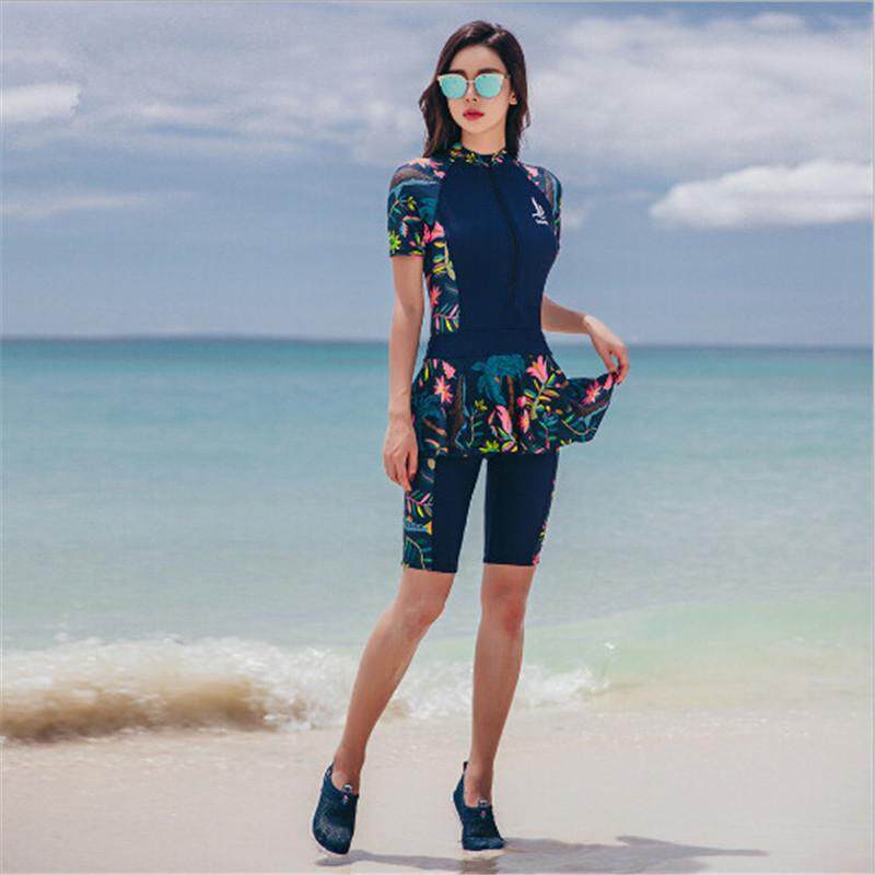 2pcs Dark Blue One Piece of Swimming Suit Conservative Belly Thin Sports Large Size Swimwear for Women 3XL