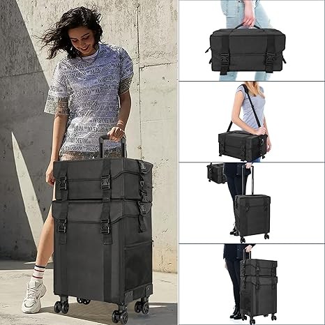 【Professional Rolling Makeup Case】The 2-in-1 Makeup Travel Case is designed for professional makeup artists, nail technicians and hair barbers/stylists.
