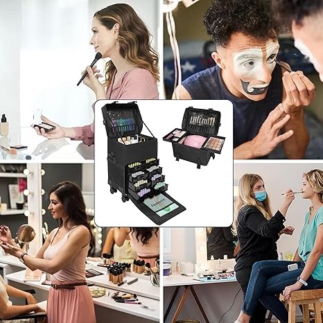 【Versatile】 Our rolling makeup case for professional makeup artists, nail technicians and hair barbers/stylists. Whether for traveling or house calls, it holds everything you need and keeps everything organized.