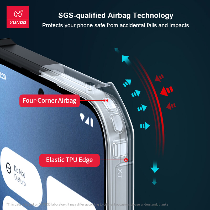 • protects the outer edges of your phone, protecting it from accidental drops and shocks. SGS-approved built-in airbag technology protects against falls
