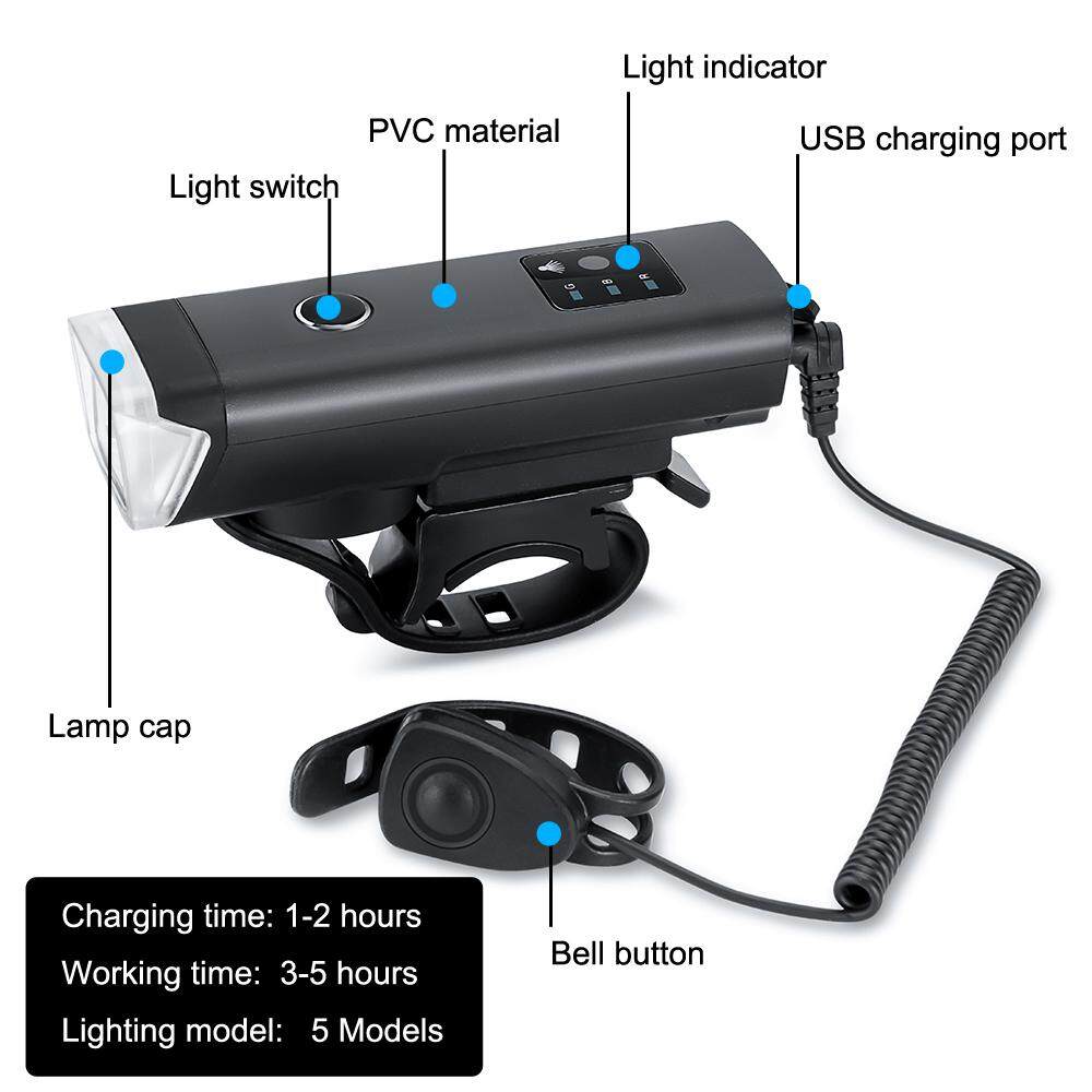 Bicycle Lights German Standard Anti-glare Induction Bike Front Light Bike Bell 2 in 1 USB Rechargeable Lantern lamp with horn