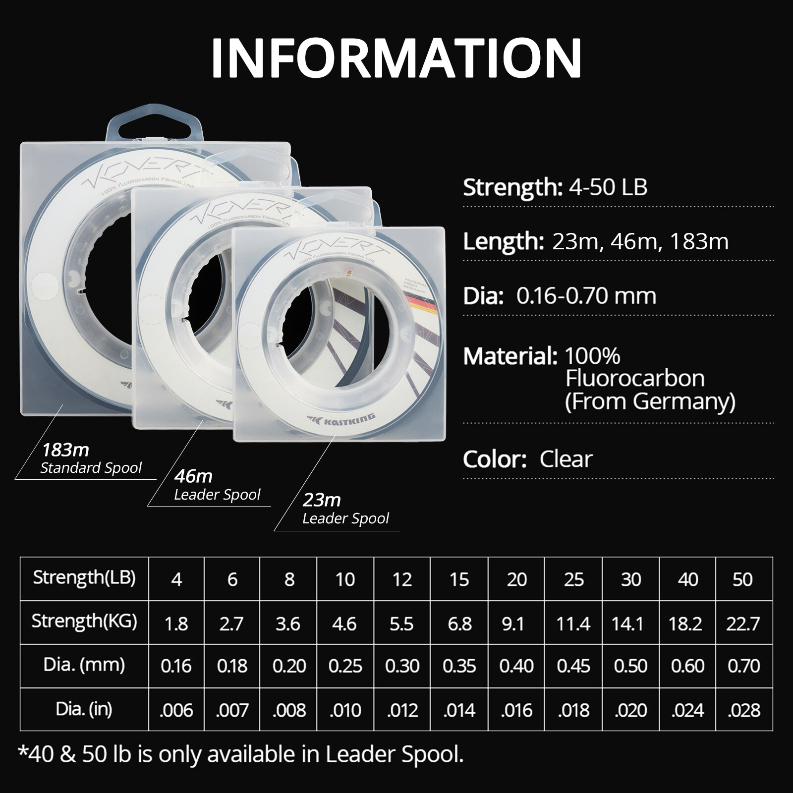 100% Fluorocarbon (material from Germany)
