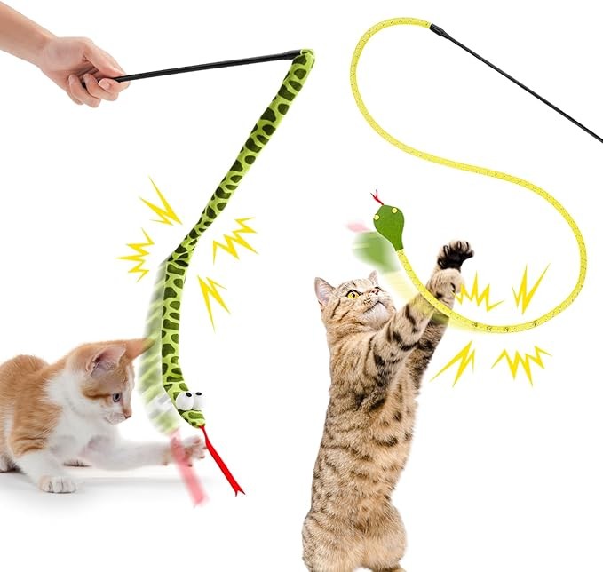 • Double the Fun:Snake toy is sure to keep your cat’s attention. Includes a Plush Snake with crinkle paper and a Mesh Snake with bells, providing diverse entertainment for your feline friend.