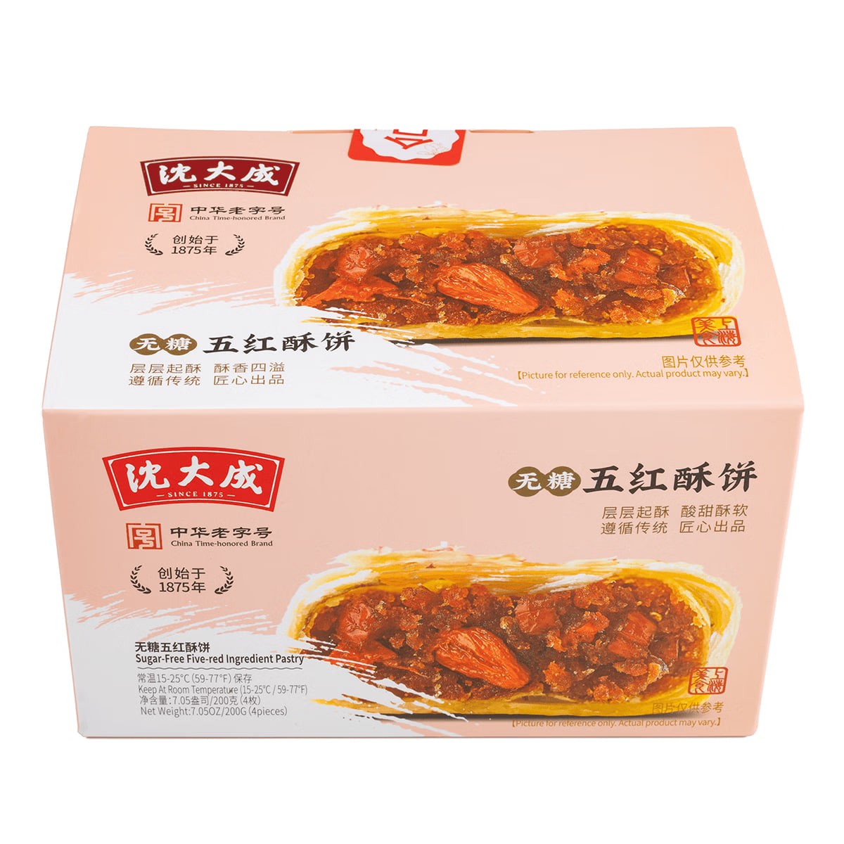 Su-style Five-Red Multi-Flavor Mooncakes, Sugar-Free, Fine Sand Shortbread, Mid-Autumn Festival Shanghai Specialty, 4 pieces, 200g. Suitable for those with diabetes.