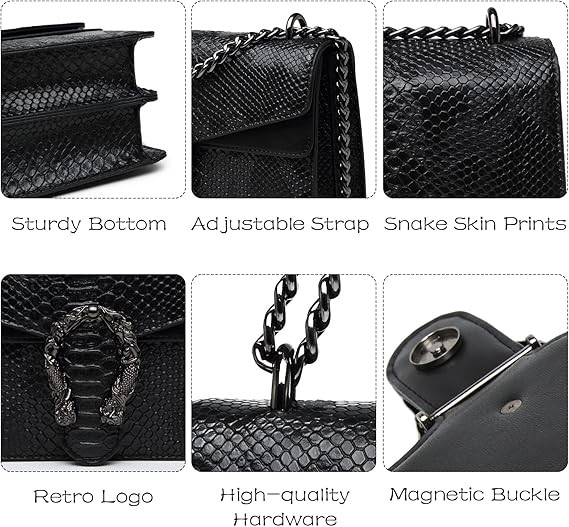 Material: Our women's crossbody bag is made of high-quality, durable faux leather with an embossed snake pattern for a premium feel. Easy to clean; simply wipe with water to keep this shoulder bag looking brand new.