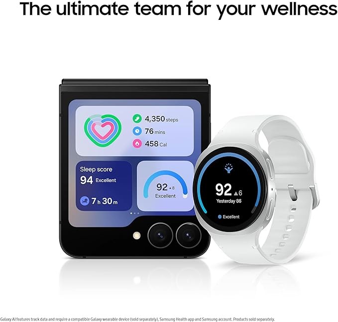 • HEALTH TRACKING COMES FULL CIRCLE: Take control of your health by marrying Galaxy Z Flip7 FE with Galaxy Ring. Designed for those on the go, Ring lets you comfortably keep tabs on your health with sleep tracking, Energy Score and Wellness Tips.