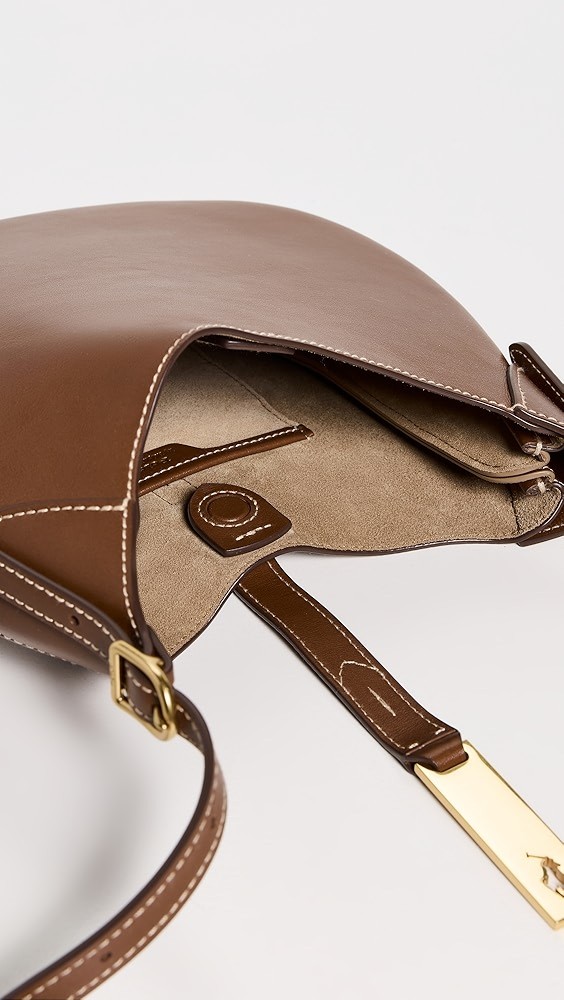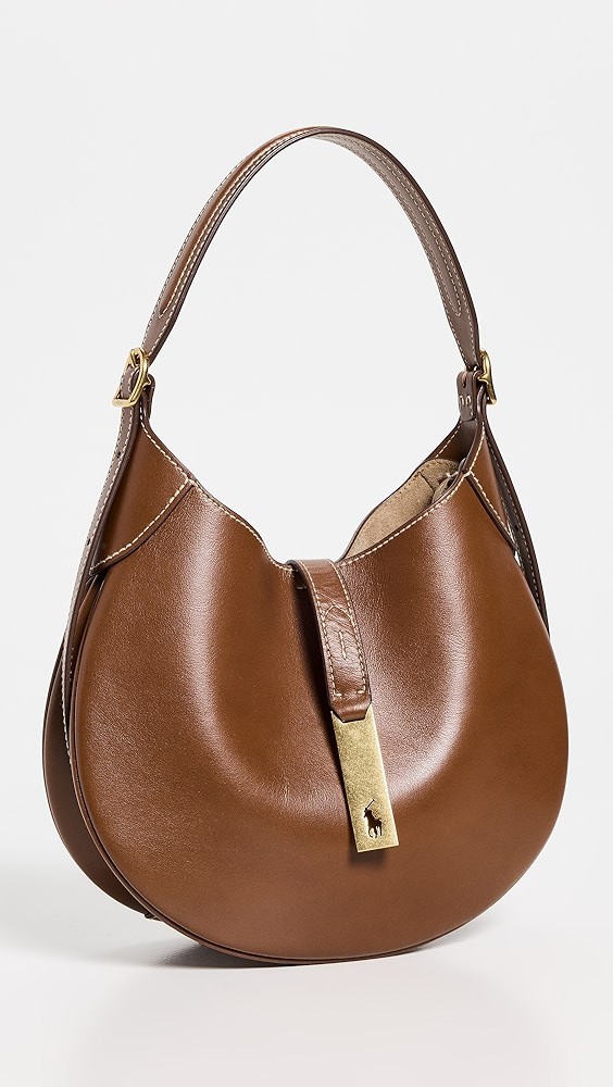 Strap at top with gold-tone logo hardware
