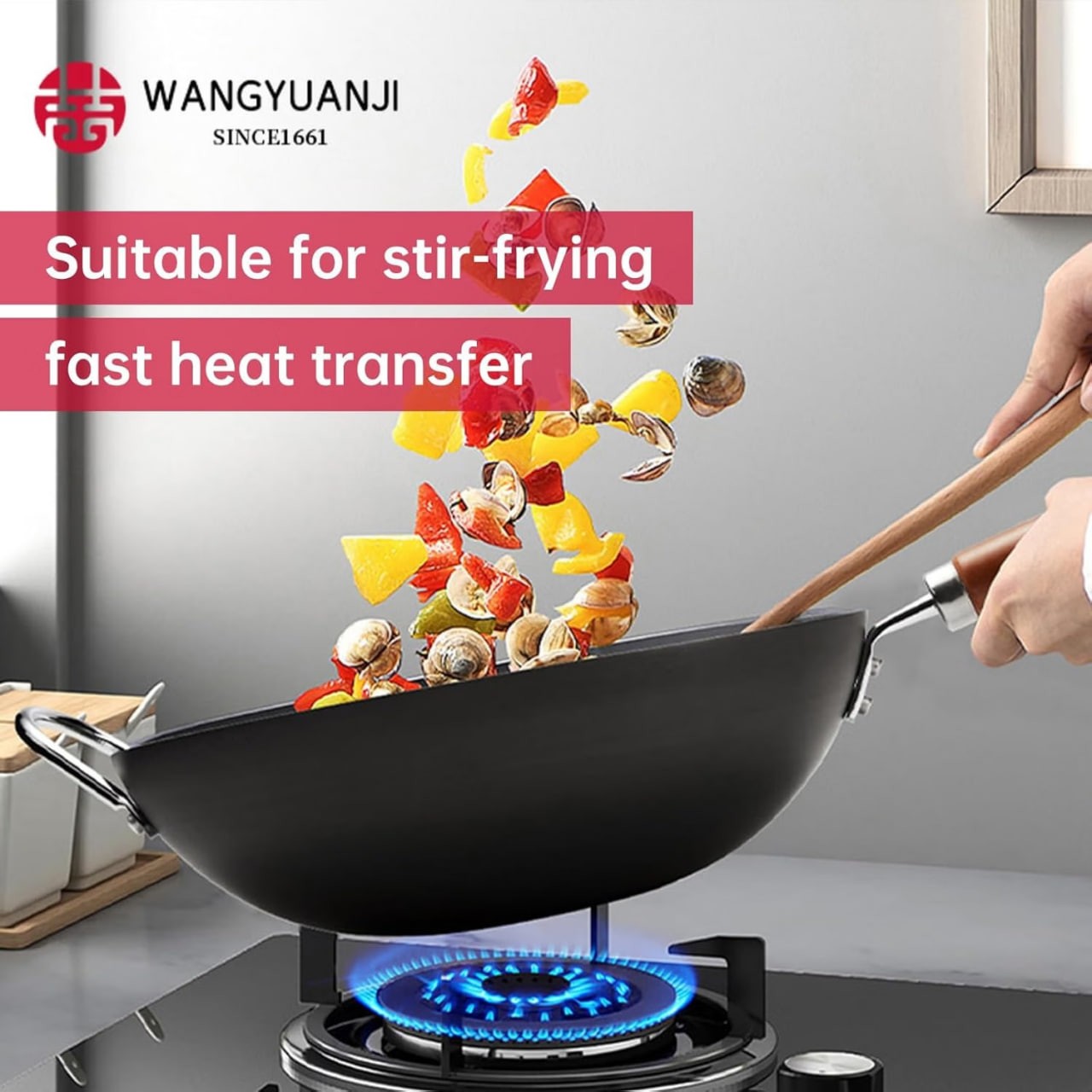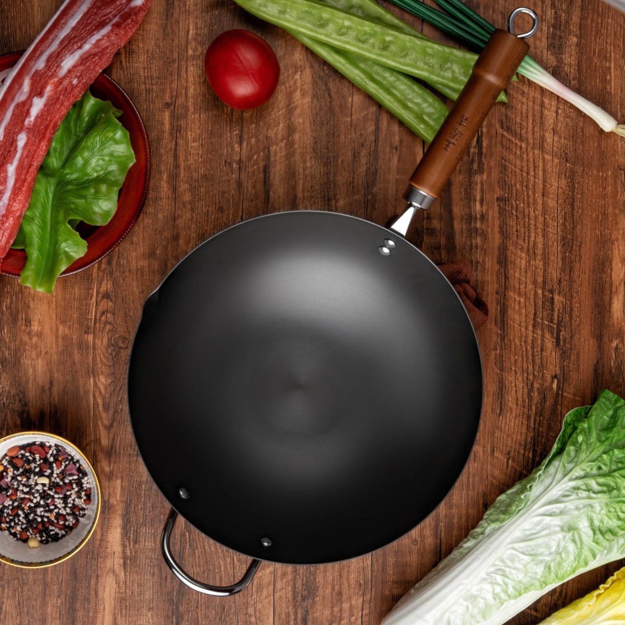 Includes a free spatula, oil-sprinkling pan, and steel wool. Wang Yuanji 34cm fine iron wok.